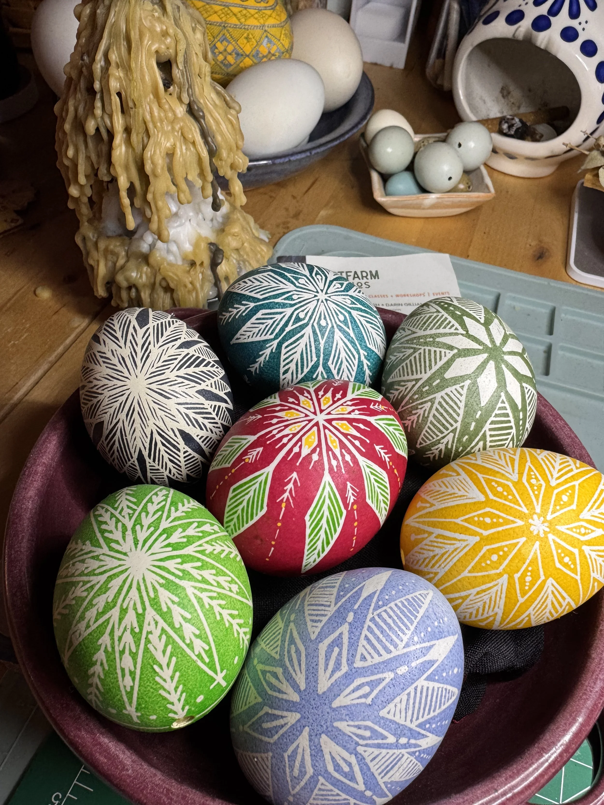Interested in learning more about Pysanky? I can help! I offer private beginner to advanced classes and resources. And I often teach at ArtFarm in Annapolis, Chestertown River Arts, and throughout the Baltimore-Annapolis area.
